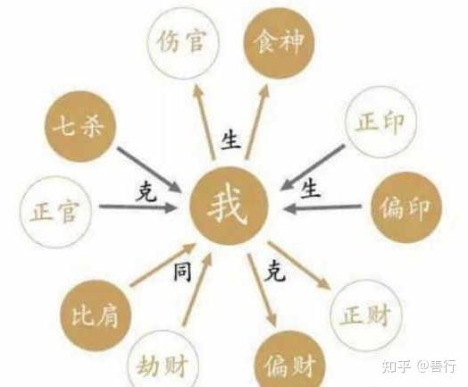 日元星,比劫同。生食伤,克才财。杀官克,枭印生。