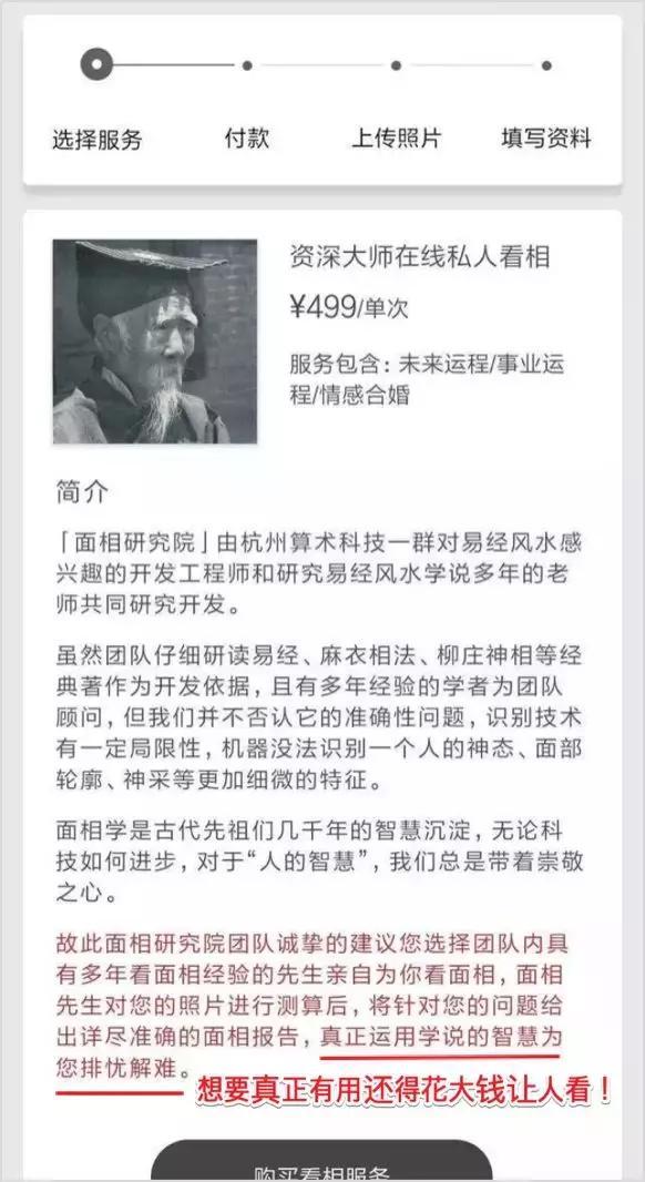 还可以进一步购买价值几百元每次的资深大师服务,这时候介绍会说: