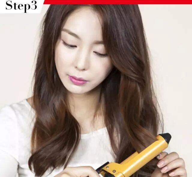 最后用卷发棒把刘海卷出弧度,记住方向是由外向内卷,用这个方法重复3-4次,头发就能定型啦!
