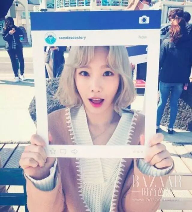 如果说郭碧婷是文艺范儿的“八字刘海”,那么泰妍就是软妹版本!弯弯的刘海配上超浅发色,十足的可爱“小精灵”~