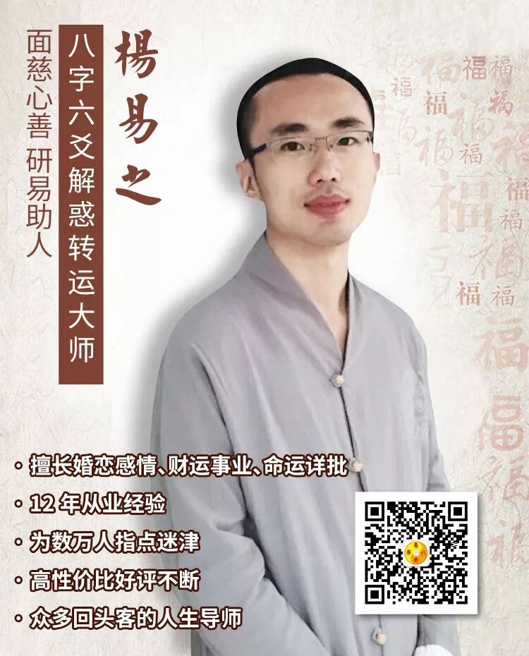 今天杨易之老师就先和大家分享到此,想详细了解自身命局运势规律、事业财运、桃花感情、2019年运程的朋友,欢迎预约咨询,交流探讨。