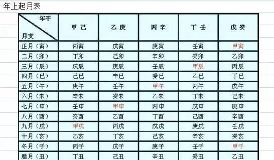2.月柱:依"五虎遁年起月表",由年干、生月对照取之。或参阅万年历书查得干支历。