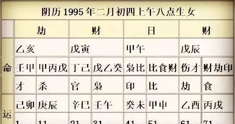 阴年生女例:阴历1995年二月初四上午八点生女。