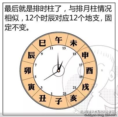 4、排时柱:八字所说的“时”,是将一日24小时分为12个“时辰”,每一个时辰为两个小时。时和时辰的对应关系如下: