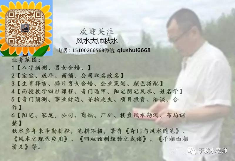 秋水老师:最近您是否感觉财路不畅,运势不佳?有没有觉得坏运缠身、诸事不顺?想了解更多风水运势问题,可与秋水老师结缘;帮你化解财运、健康、婚姻难题。教你如何化解风水,远离凡事纷扰,趋吉避凶,从官仕途高升,从商广纳财禄,得安康吉庆人生。