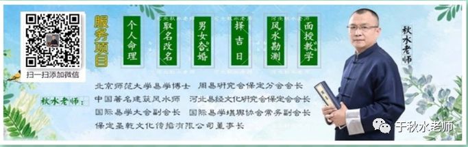业务范围;家居风水、店铺风水、公司风水、工厂风水。企业策划,厂房选址,风水布局。风水讲座,企业风水讲座,建筑楼盘风水,大型活动策划、风水师高级培训。投资预测、生育择吉、婚期选定、宝宝起名,个人起名、改名,公司品牌命名,商标命名。命理预测,八字合婚,祝运,改运,旺财,催旺姻缘等预测咨询服务。招收学员、入室弟子,学员班每月1号15号开课。秋水多年来辛勤耕耘,笔耕不辍,著有《四柱基础》、《奇门启悟》、《玄空探微》、《风水精论之基础篇》、《风水精论之外势篇》等。