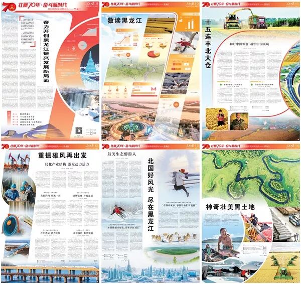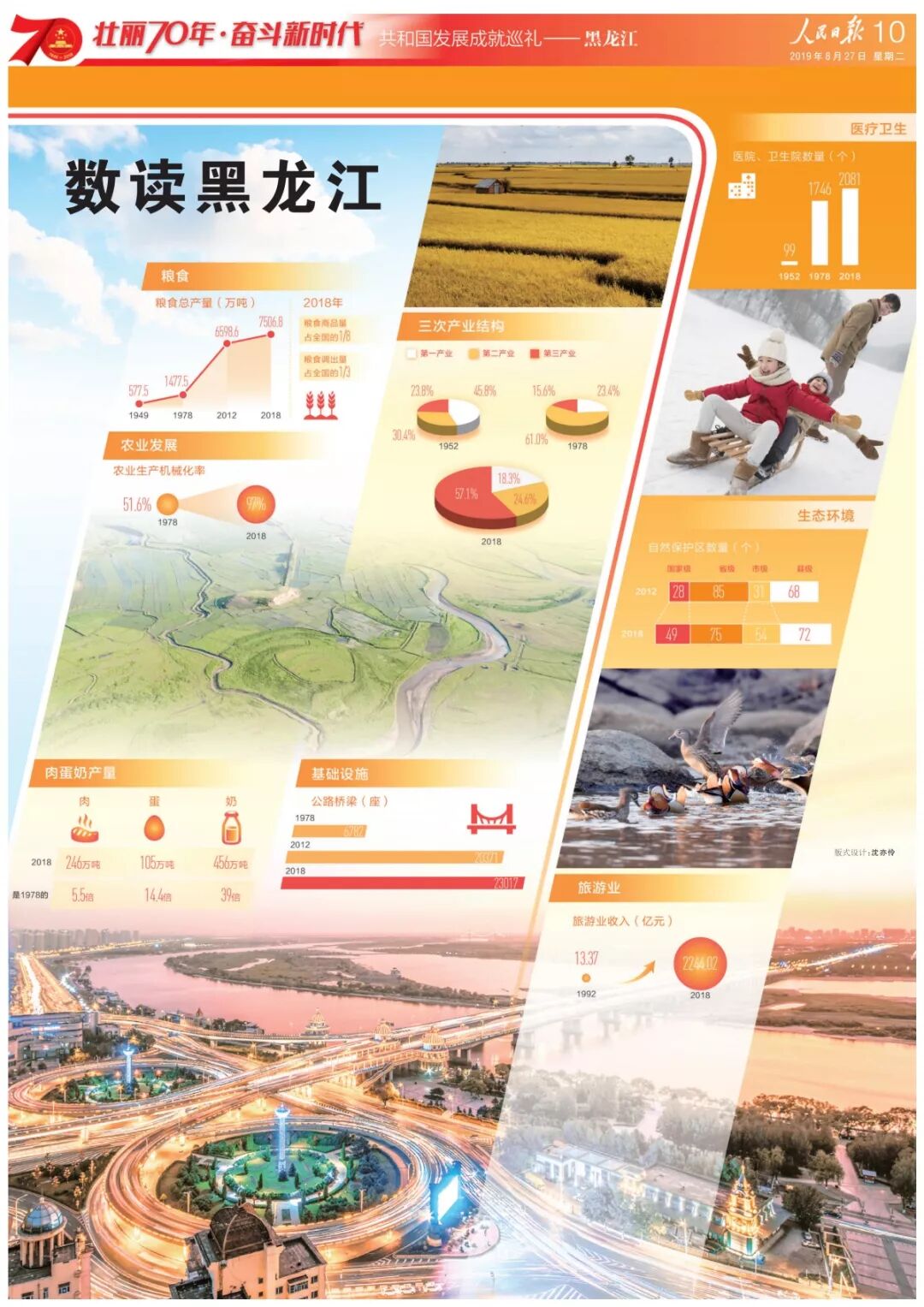 大国重器冷峻的银、乌苏里江澄澈的蓝、万顷良田丰收的金……它们都是黑龙江70年奋斗的底色。