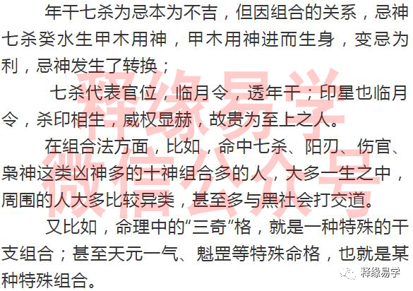 例如,乾造:癸巳,甲子,丁酉,甲辰;丁火日干偏弱,居中七杀当令逢生,印星甲木是丁火造化最有力的工具。