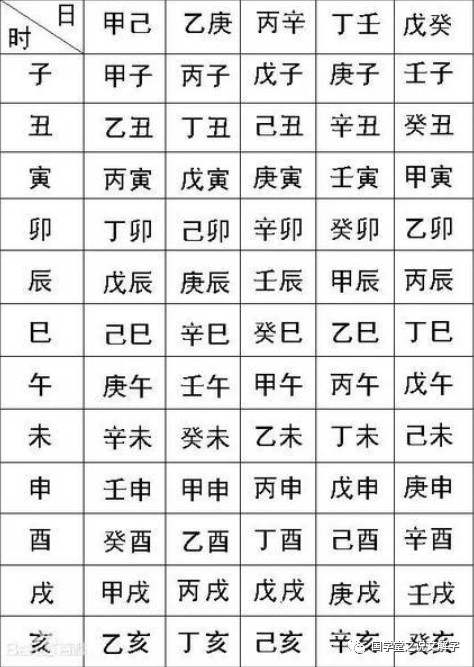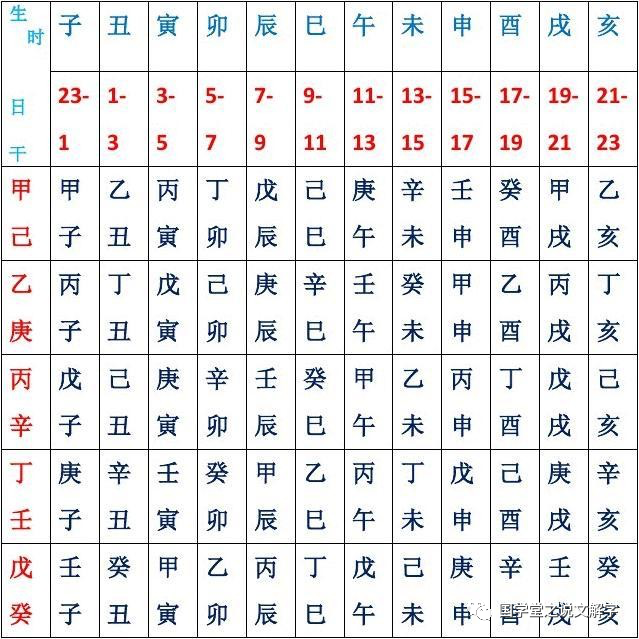 时天干可以由月天干算出,具体看下面的图表。