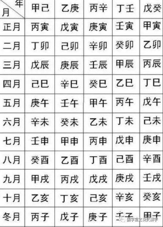 月天干可以从年天干推算,详细看下面的图表。例如,2021年是辛丑年,因此2021年12月25日(农历十一月廿二日)的月天干为“庚”,是庚子月。