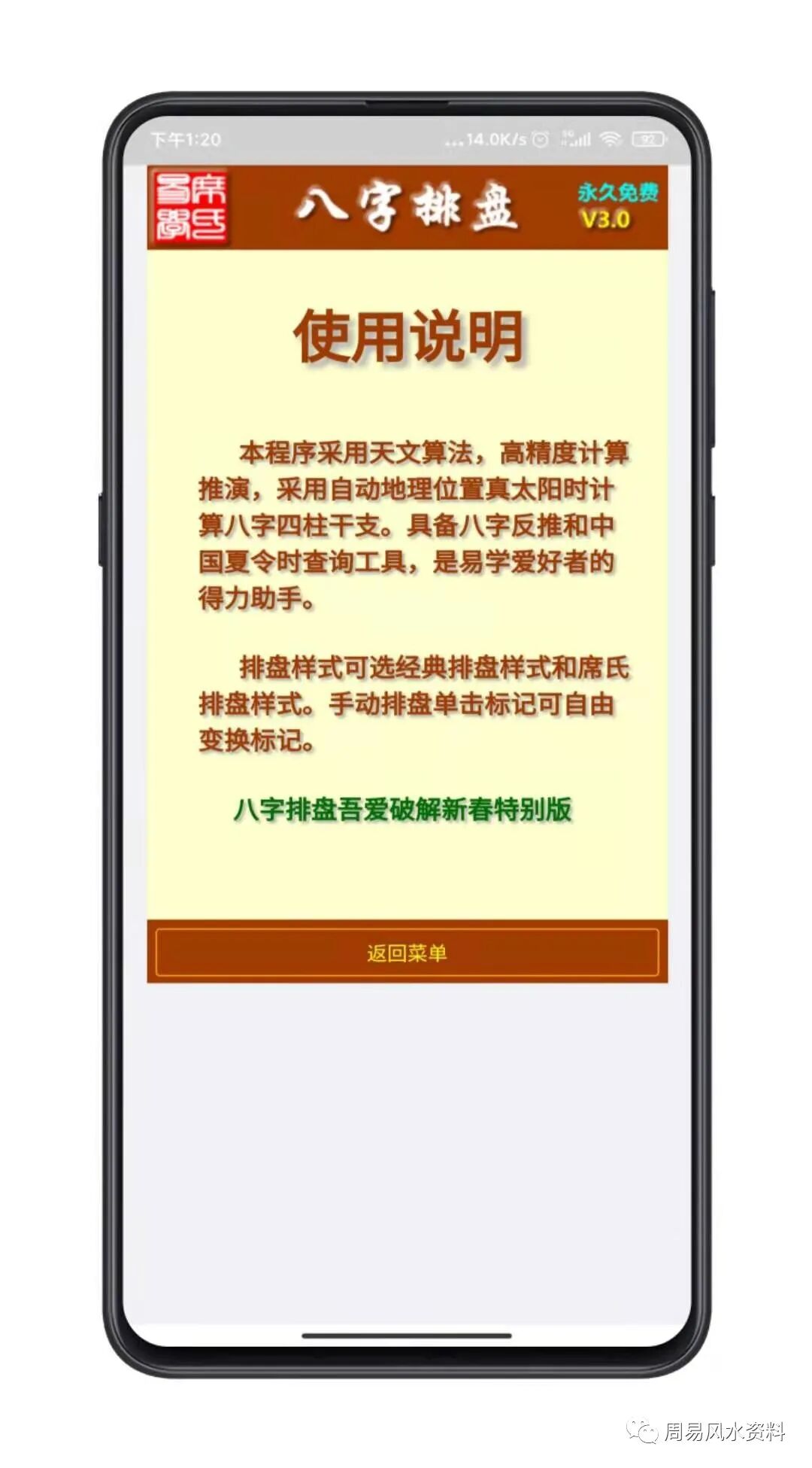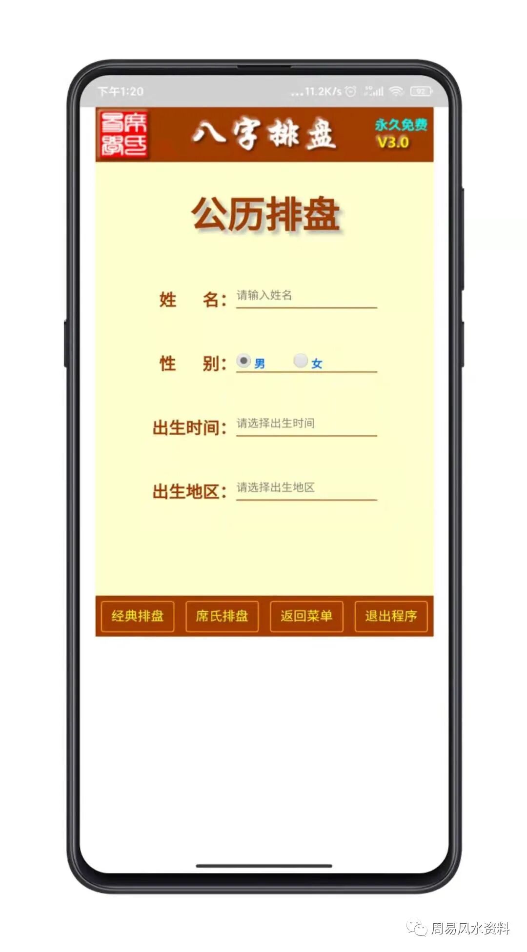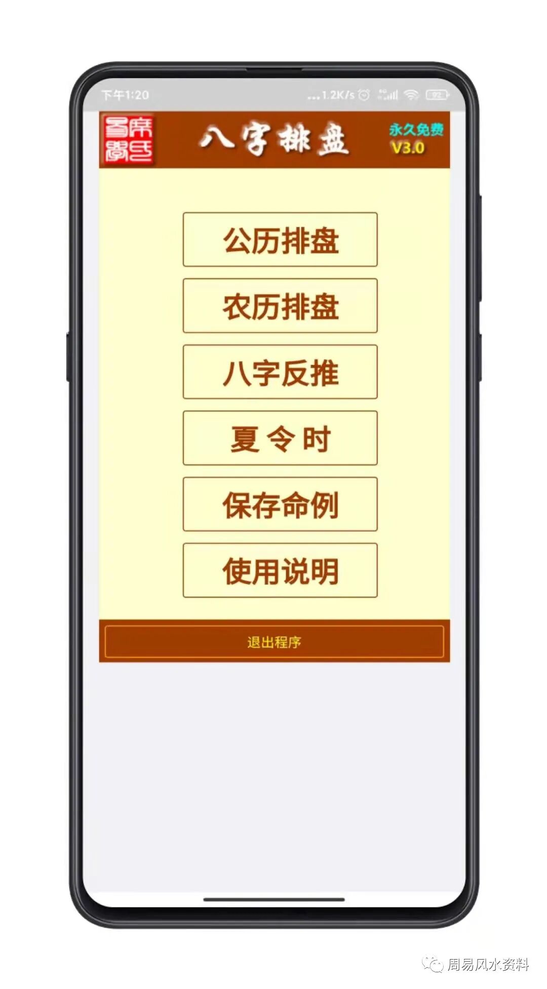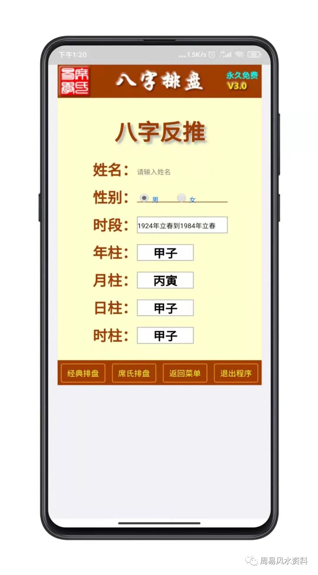 本程序获取,在后台回复:四柱八字排盘,打开链接即可下载安装。更多周易风水软件资料,请关注获取免费资料