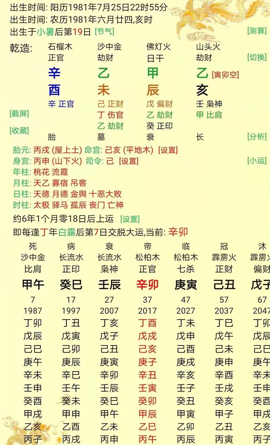 9、进入辛卯大运,官星来应该是很好的大运,但是辛金官星坐下劫脚,反不如初,真是个屋漏偏逢连阴雨,船迟又遇打头风。2019年已达到负债130多万,求借无门。