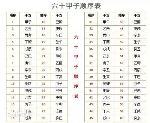 天干地支五行对照表