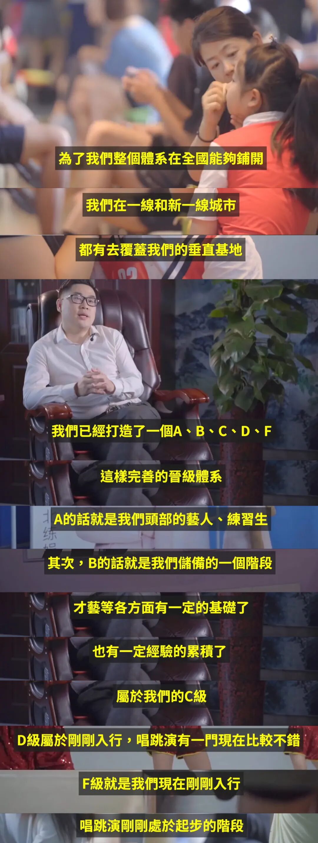 “BBC NEWS中文”2019年发布的新闻短片《如何打造一名中国偶像》截图,短片主角是一名当了三年训练生的12岁少女。图为某娱乐公司华北区总裁谈论训练生培养体系。与本文无关,仅为展示。