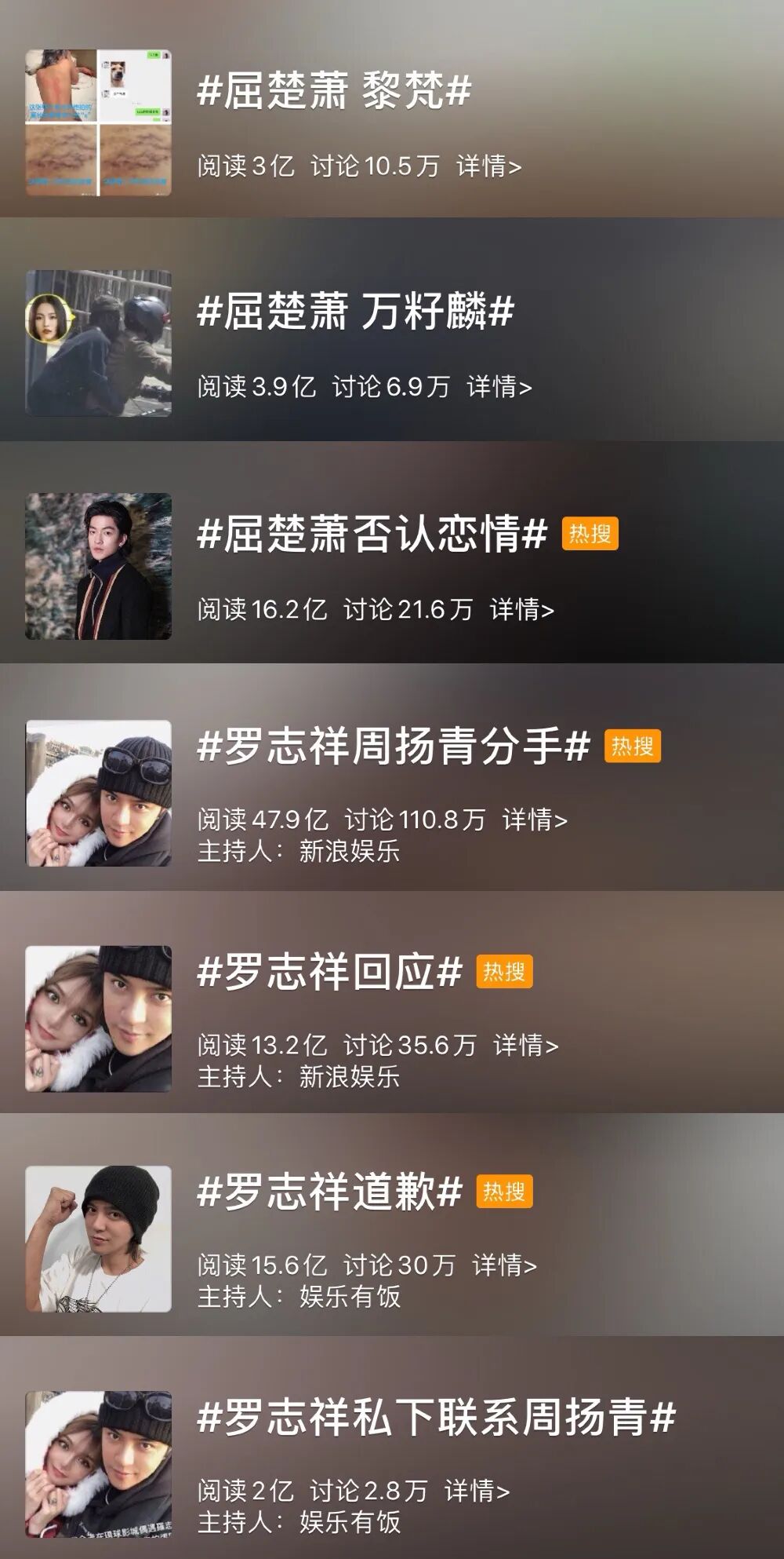 部分艺人的恋情热搜,与本文无关,仅为展示。