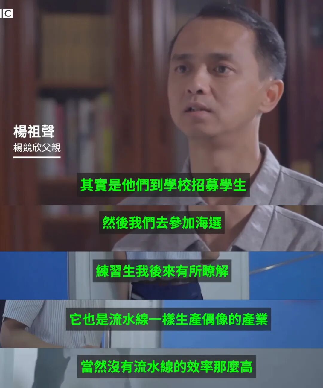 “BBC NEWS中文”2019年发布的新闻短片《如何打造一名中国偶像》截图,短片主角是一名当了三年训练生的12岁少女。图为她的父亲谈论训练生和偶像产业。与本文无关,仅为展示。