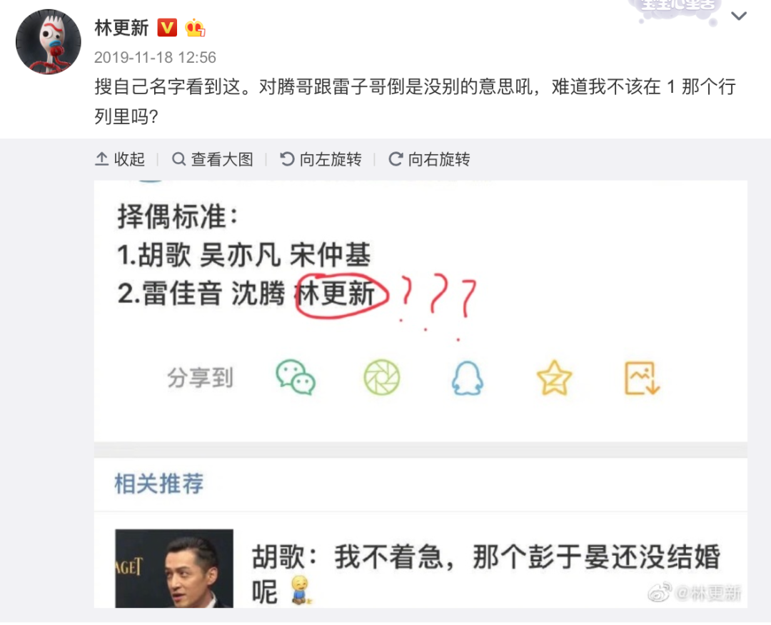 出生于辽宁省沈阳市的演员林更新,截图自微博。与本文无关,仅为展示。