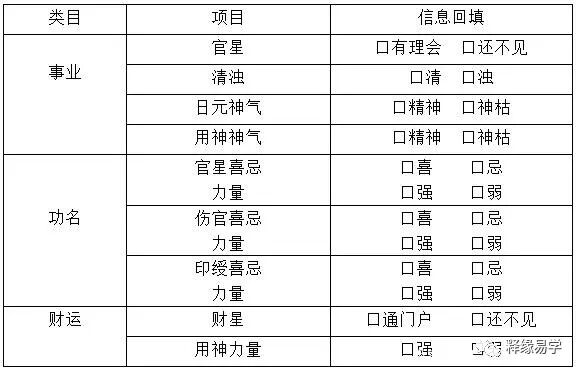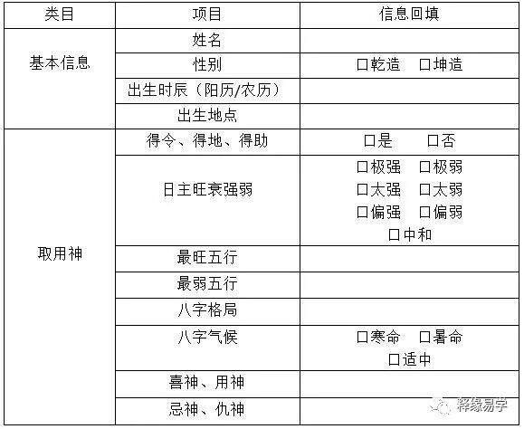 为了方便取用神,在此列出了辅助表格,表格不是严格固定的,视个人习惯爱好调整。