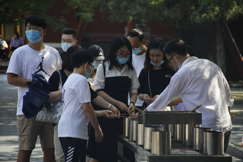 国庆期间,北京的雍和宫香火鼎盛。作为北京市最大的藏传佛教寺庙,这里可以看见许多前来许愿的年轻人,他们或许不懂宗教,但是愿意为了自己升职加薪脱单暴富健康平安的愿望进行一番虔诚祷告。