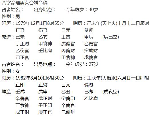二、命局双方阴阳配合较好,男命阳五行较多,女命阴五行较多,为能阳得配,多为婚姻上符合阴阳配合正道,主为婚后感情较好,不容易发生裂缝。