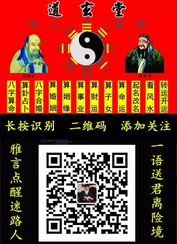 道家资深算命大师,从事周易命理研究测算几十载,擅长:八字算命,算卦预测,六爻占卜,风水布局,起名改名,择日择吉。精通:八字算命学,姓名学,八宅玄空风水布局,相术等.....需要大师亲算解答的.请加大师:sm9782