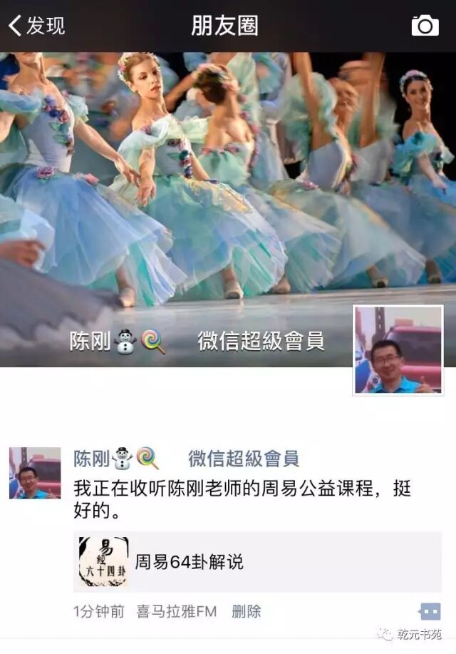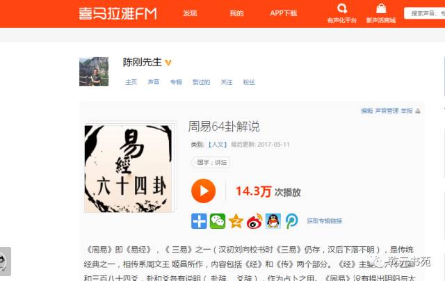 4. 将此专辑链接转发到朋友圈里面,并配合一段文字:”我正在收听陈刚老师的周易公益课程,挺好的。“
