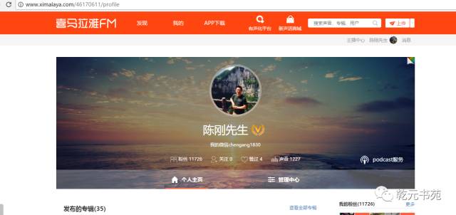 如下图所示,首先登录喜马拉雅FM,找到主播”陈刚先生“的专辑,