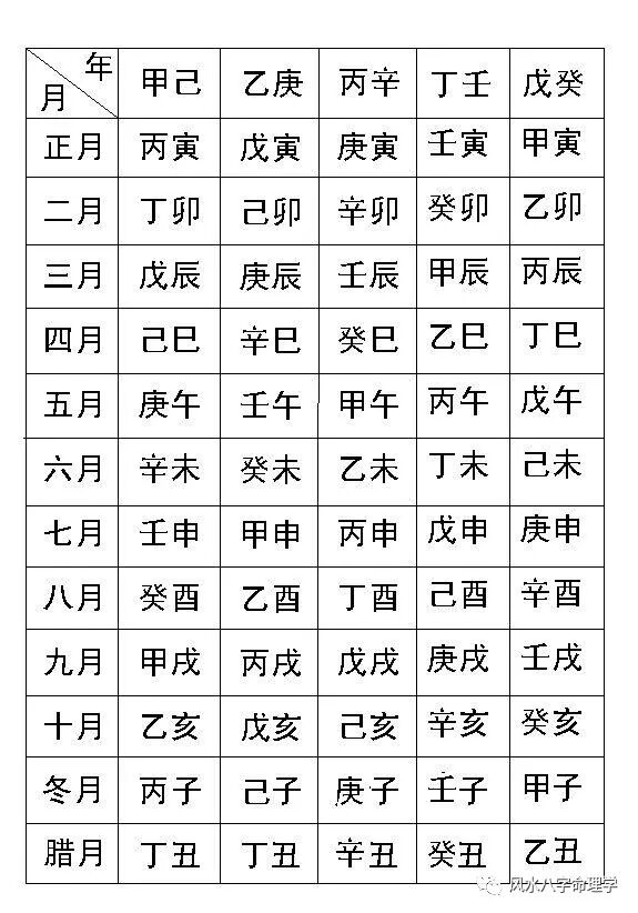 凡遇甲、已年,正月起丙寅,二月丁卯,其他如表所示