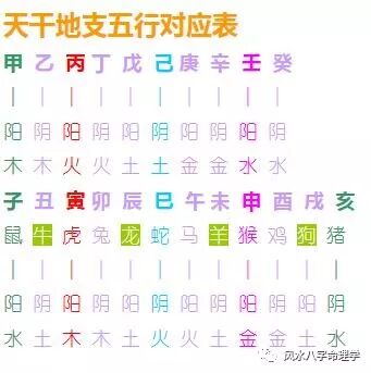 天干的五行属性:甲、乙为木,代表东方。丙、丁为火、代表南方。戊、己为土、代表中央。庚、辛为金、代表西方。壬、癸为水、代表北方