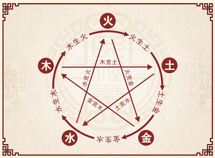五行是中国古代道教哲学的一种系统观,现在被广泛用于哲理学、中医学、命理学、占卜学等方面,它包含着借由阴阳演变过程的五种基本动态:水(代表润下)、火(代表炎上)、金(代表收敛)、木(代表伸展)、土(代表中和)。