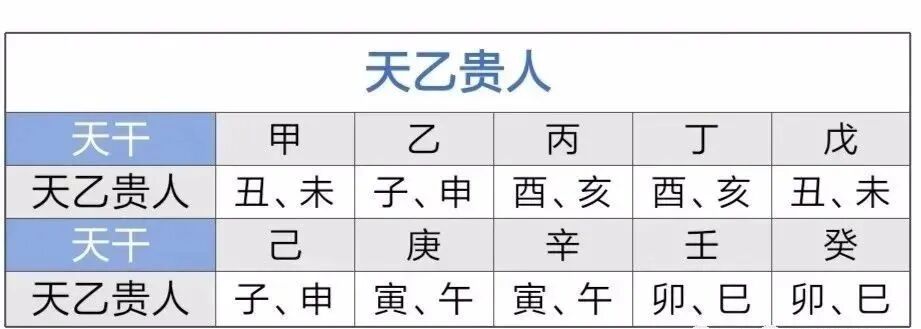 四柱有贵人,遇事有人帮,遇危难之事有人解救,是逢凶化吉之星。故《三命通会》说:天乙者,乃天上之神,在紫微恒阖门外,与太乙并列,事天皇大帝,下游三辰,家在斗牛之次~较量天人之事,名曰天乙也,其神最尊贵,所至之处,一切凶杀隐然而避。烛神经还讲:天乙贵人遇生旺,则形貌轩昂,性灵颖悟,理义分明,不喜杂术,纯粹大器,身蕴道德,众人钦爱。死绝则执拗自是,喜游近贵。与劫煞并则貌有威,多谋足计。与官符并,则文翰飘逸,高谈雄辨。与建禄并,则文翰纯实,济惠广游,君子人也。三车一揽赋云:天乙文星,得之聪明智慧。惊神赋云:日干座贵,一世清高。天乙贵人,命中最吉之神,若人遇之则荣,功名早达,官禄易进,如命乘旺气,终将登将相公候方位。大小运行年这时,亦主升官进财。一切加临这时,皆为吉。凡贵人所临之处,大概喜生旺无冲破,道理顺。天乙贵人遇天月二德最佳,得之者聪明智慧。日干坐贵,一世清高。天乙贵人最忌刑冲克害,空亡死绝之地,遇者为祸,福力减少,一生劳碌。辰戌为魁罡之地,贵人不临,故辰戌二支无天乙贵人。四柱无贵人,看其胎元、命宫有贵人否。以日干查命宫,胎元之支。倘若四柱、胎元、命宫都无贵人,假如有了事情或重大灾难难以克服,按照本人日干所缺贵人星,找属相临贵人之人相帮,往往可以逢凶化吉。若有贵人,不管熟悉与否,有了困难会有人帮,而这个人往往就是本人四柱所标志的贵人,如有个落水者被人救起,落水者的四柱贵人为丑未的话,这个救命恩人往往恰是属牛或属羊之人。