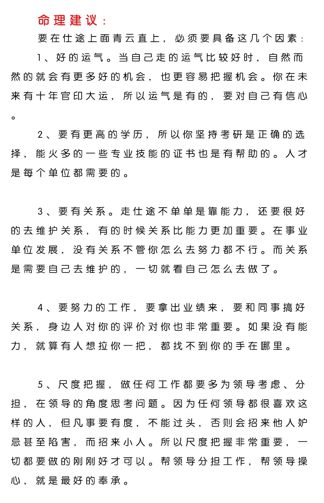 关注老师很久了,中年之前感觉生活不如意,困顿多年近几年有些起色,请老师看看事业发展。老师的技艺高超,品德高尚堪称德艺双馨。我希望老师看看我的情况,毕竟我是32周岁考取公务员的,体制内 35是个坎,我知道自己机会不多了。