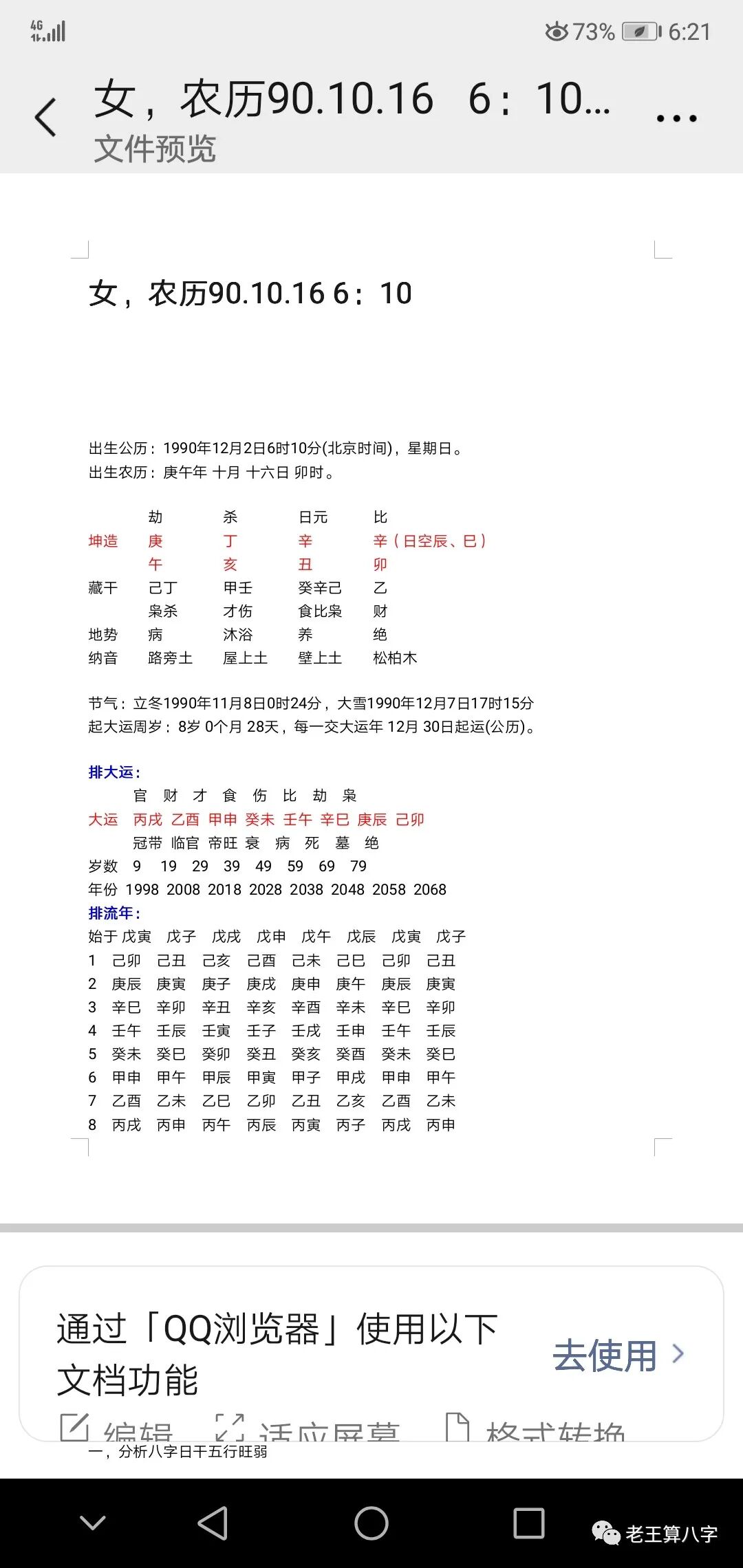 一,分析八字日干五行旺弱日干为辛金代表命主,生在冬天亥水月令,冬天水旺金弱,故八字身弱。八字讲究五行平衡,身弱喜生扶,土金能生扶日干辛金,故土金为用神。身弱不喜再逢克泄,水木火能克泄日干辛金,故水木火为忌神。二,分析事业财运日干辛金代表命主,生在冬天,八字身弱有不担财之象,犹如眼前有一座金山,又有自身体弱而不能担走,所以需要有人帮忙才能担走,故命主在求财方式上,就要寻求合作之路,合伙做事或合伙求财对你会更有利。日干辛金代表你,年上庚金和时干辛金为比劫,比劫代表命主的同事朋友同学同辈合伙人等,八字身弱喜有比劫助身担财,故命主一定要和他们搞好关系,也很适合和他们合伙做事或合伙求财,只有这样才会收入颇丰。切忌不要单打独斗,或独立门户,不仅收获不多,且也会因为辛苦劳累求财而影响到你的身体健康。命主生在冬天亥水月令,水旺生木,卯木为财星,财星得月令之生而旺,且居时支,时支为内也代表命主,财居时支也为财星入内,说明命主未来也有发财机遇,一生钱财不缺。八字身弱也喜日支丑土印星生身,印星代表关爱和关心帮助你的人,是你的贵人和靠山。但是时支卯木财星克了日支丑土印星,印星为用神不喜被克,则容易会有因为求财而损坏声誉之事,故命主今后求财方面也要多加注意才好,求财要如理如法,莫去想不义之财,要靠勤劳致富会更好。命主八字财旺身弱有不担财之象,但八字有庚辛金比劫助身担财,比劫在八字发挥了很好的作用,所以命主未来虽然不能大富,但过小康生活也会超超有余。八字身弱,喜土金助身担财,土为四隅方位,金为西方,以命主出生的地方为中心点,到以上方位发展求财对你会更有利。三,分析大运运势29-39岁走甲申大运,大运申金为比劫,比劫代表命主的同事朋友同学同辈合伙做事或,八字身弱喜比劫助身担财,所以命主在这个大运里更适合合伙做事或合伙求财会更好。且运支申金引动八字庚金比劫助身担财,所以命主在这个大运里事业工作及财运都会很好,所以一定要好好把握住机遇,好好发展一下,只要积极努力大胆去干,就一定会有不错的收获。39-49岁走癸未大运,大运未土有力生身,未土为印星代表命主的贵人,未土生身,命主在这个大运里也容易会有贵人相助,所以一定要好好把握住机遇,不断提升自己的事业和财运。同时大运未土去冲日支丑土,为印星相冲,印星也代表家或工作单位,印星相冲则会有搬家或工作变动之象,故要多加注意。49-59岁走壬午大运,壬水泄了日干辛金,午火克了日支辛金,大运都是克泄日干辛金的五行,故命主在这个大运里,事业工作及财运平平,就要少欲少求,顺心自然会更好,不要强求冒进,保持平稳发展就好。59-69岁走辛巳大运,69-79岁走庚辰大运,晚年走庚辛金比劫助身大运,比劫为用神,晚年走用神大运,则身体更健康,精神焕发,心情愉悦,身心健康,有长命百岁之象,也为有福之人。四,分析近期流年运势今年是壬寅流年,为水木旺的流年,壬水为伤官,寅木为正财,伤官生财,说明命主今年财源丰厚,财星较旺。但是命主八字身弱不担财,故命主今年要想求得更好的财,就要寻求合作之路,才会有更多的收获,否则会很辛金且收入也不会太多。明年是癸卯流年,也是水木旺的流年,财旺身弱更需要合伙求财,方才有利,切忌单打独斗,不利财运。2024年是甲辰流年,辰土为印星,印星代表关爱和关心帮助你的人,是你的贵人,所以命主在这年会有贵人相助和提携,财运也会有好转,所以一定要好好把握住机遇,事业工作及财运就会一个新的突破。但是甲辰流年,甲木克辰土,甲木为财星,甲木辰土为财星破印,也容易会因为求财而损坏声誉之事,故要多加注意才好。2025年是乙巳流年,为火旺的流年,八字身弱不喜火旺克身,火为官杀代表事业工作及财运,说明命主在事业上压力较大,故要多加注意才好。且巳亥相冲,流年巳火冲了八字亥水,冲则有动,也有事业不稳定之象,要多加注意。2026年是丙午流年,为官杀混杂的流年,官杀代表事业,官杀混杂说明命主在这年事业工作不稳定,且官杀混杂克身,会因为事业而压力较大,所以要少欲少求,待到来年运势好转以后再图发展不迟。总之,从命主八字原局来看,八字财星当令而旺,且居时支入内,又有比劫助身担财,说明命主一生也会衣食丰足钱财不缺,财运不错,未来不会为钱财犯愁。从大运来看,29-49岁这个二十年都是在走土金助身担财的大运,很利事业工作及财运发展,所以一定要好好把握住机遇,积极努力大胆去追求,就一定会有不错的收获。从近期流年运势来看,近期五年都是木火旺克身的流年,八字身弱喜土金助身担财,而命主未来五年都是克泄八字的流年,所以流年不利,事业工作及财运也不会有很大的提升,因此要合理规划安排,切忌莽撞行事和强求冒进,否则会有破财之患,待到2027年丁未流年以后,土金助身担财,运势好转以后再图发展不迟。
