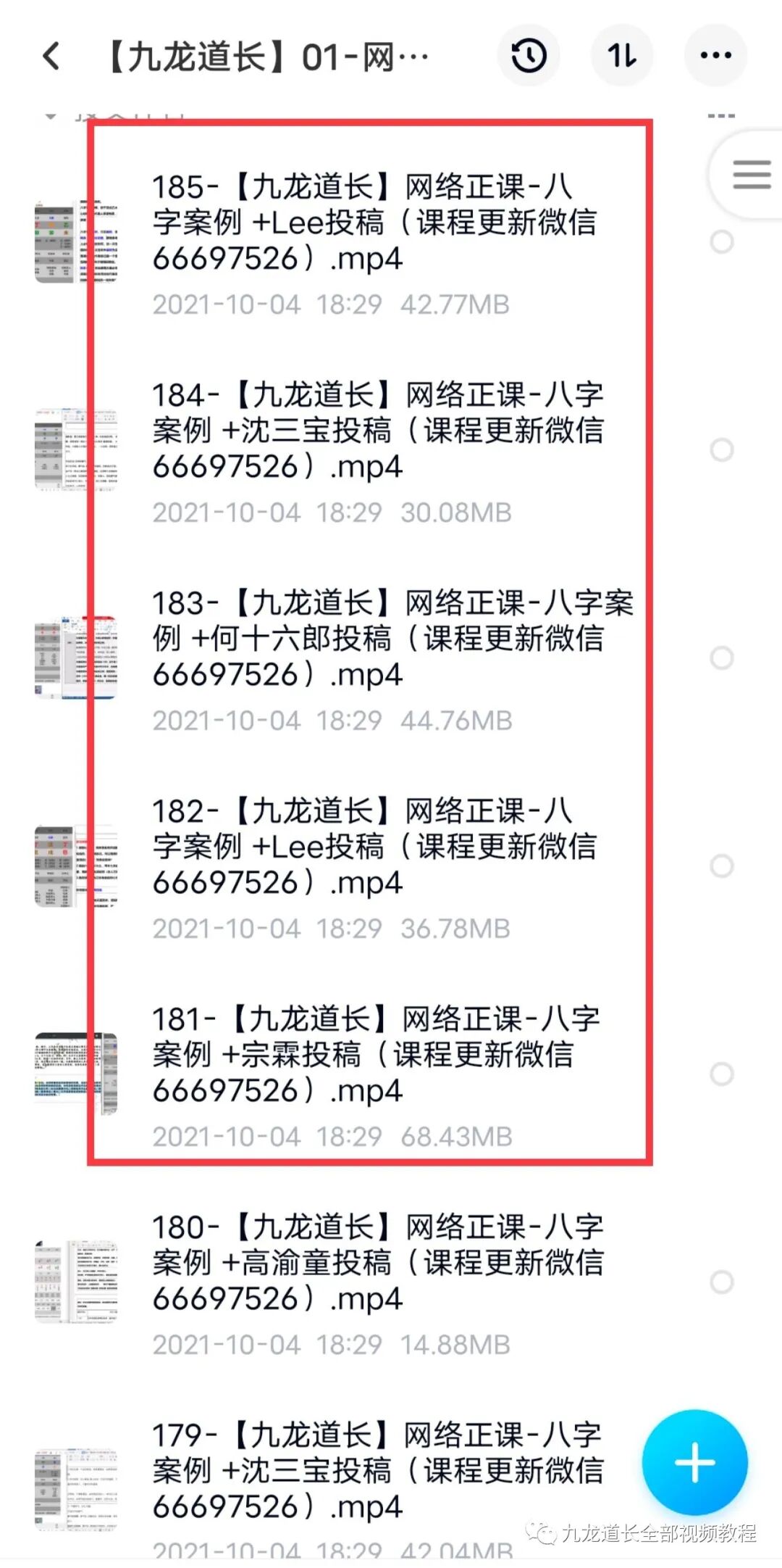 目前,九龙道长的视频教程,包括实站班26集,网络正课185集,网络直播课22集,优秀学员笔记12份。