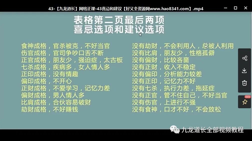不过,如果你像我一样,只是爱好 ,没有那样的经济实力,那就先看看他的视频教程,学学基础吧。打好基础,以后再学更高的也不会吃力。 四柱排盘九龙道长-算八字教程九龙道长-桃花劫化解九龙道长-