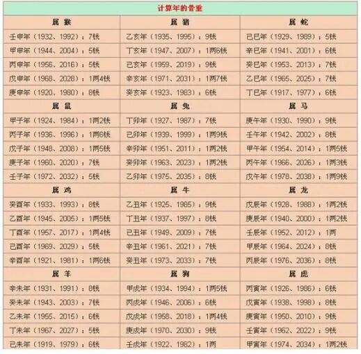 年、月、日、时骨重加在一起(1.2+0.6+0.5+1.6=3.9),此人总骨重是三两九钱。根据此人的性别查看男女不同版本的三两九钱的“称骨歌”,就是这个人毕生的运气。