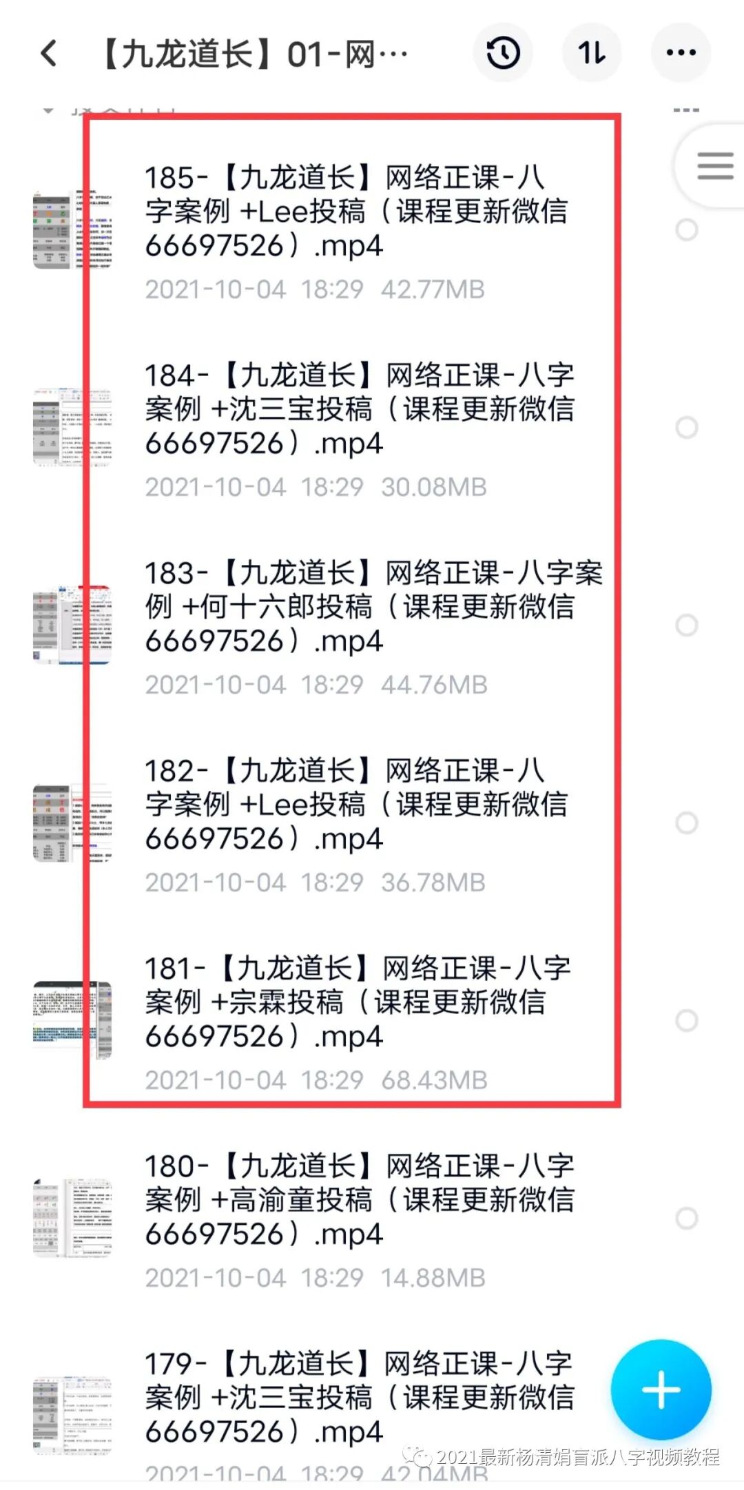 目前,九龙道长的视频教程,包括实站班26集,网络正课185集,网络直播课22集,优秀学员笔记12份。