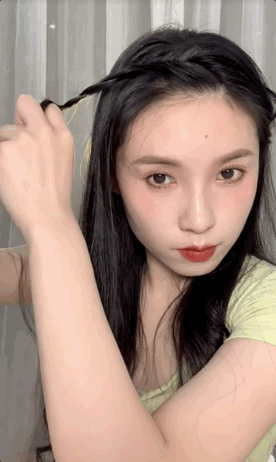 STEP 4:再取刘海斜后方的一缕头发和刘海归拢在一起,并编成三股麻花辫,长短随意就完成啦~