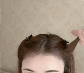 只需要四个小抓夹就能get同款!将头发分到两边,取出上面靠前的三角区头发,向内卷几下后夹住。