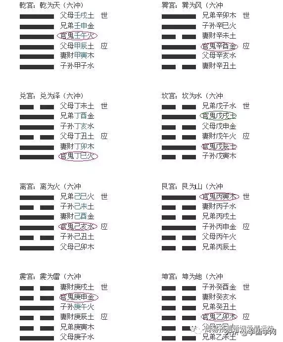 所谓纳甲,就是将十干纳于八卦,并与五行、方位相配合。关于这一点,我们现在不需要学习如何推演,只需要按表查询就可以。