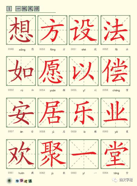 它是我国首次按照成语使用频度划分等级的成语课本。全书共分为3个等级12册,其中1-4册为一级成语,也是学生必须要掌握的成语。