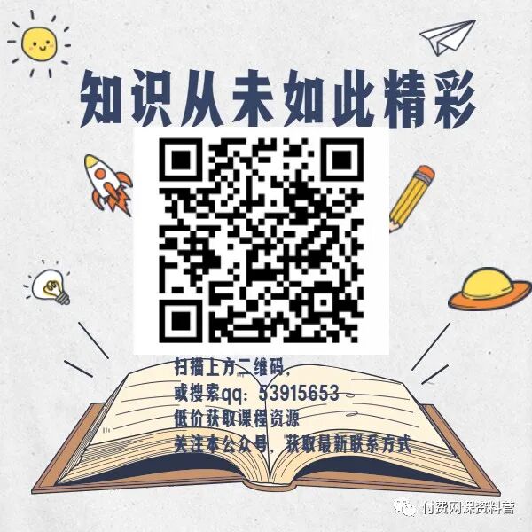 精品好课,你需要的我刚好有,并且愿意低价分享给您,需要此课程的同学记得联系我哦,更有海量学习资源与你分享~