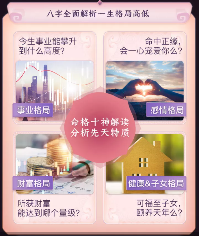 这种排盘术,不仅能解锁你的本命特质,拥有何种天赋?容易在哪行名利双收?还能预测你的人生气运有多强?桃花旺盛?脱单顺利?工作能否升职加薪?未来十年运势如何?