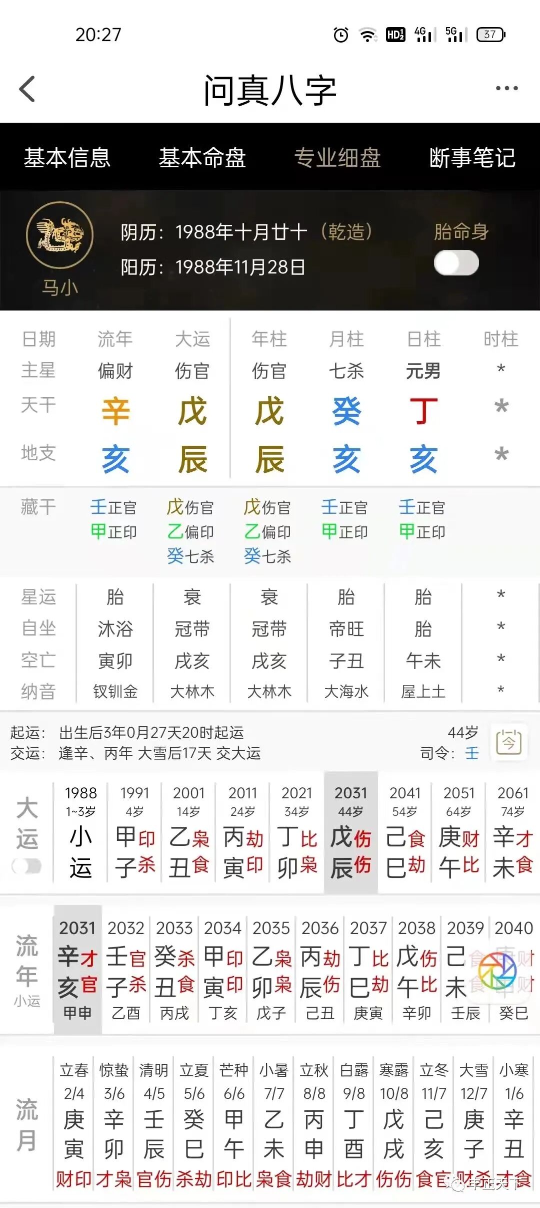 反馈:有不良爱好,拖累狐朋狗友,女朋友多,为了女人能卖车。猜猜哪年有事。