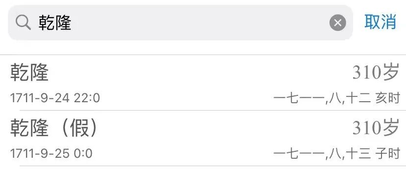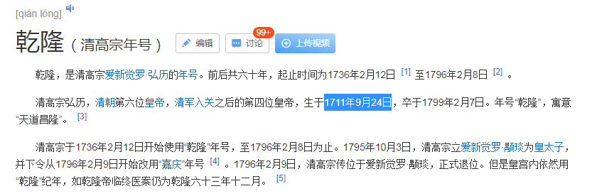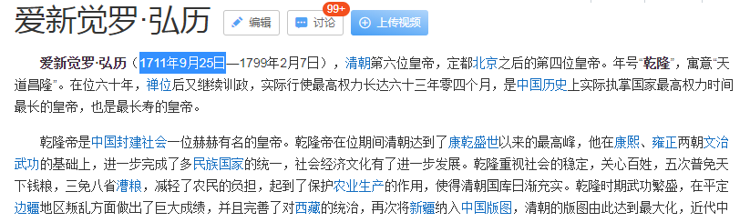 但按照“爱新觉罗·弘历”去搜,出来的却是1711年9月25日: