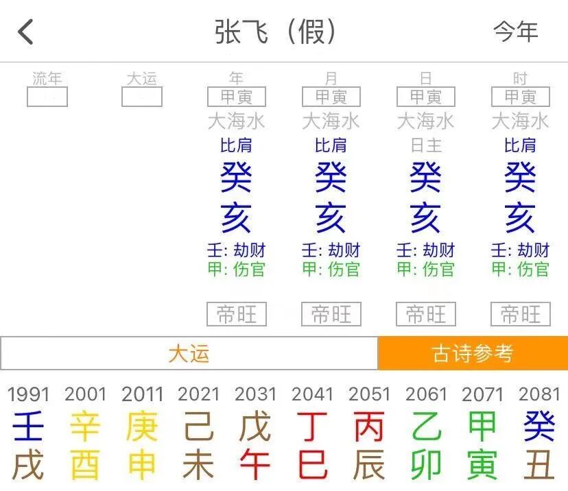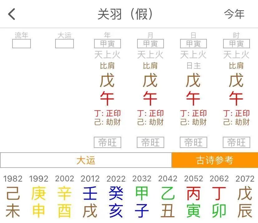 张飞、关羽这两个假八字的序列倒是真实存在,可以有这样四柱一样的组合。但稍微调研一下历史资料就可以打假。