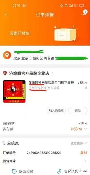上图是北京某女士发来的淘宝店订单截图,宣称正宗在线财神网、外观与在线财神网阴阳五行护身符一样,询问是不是在线财神网的正品阴阳五行护身符。回答是:在线财神网已经发布声明了,这纯粹是冒充在线财神网骗人,与在线财神网没有丝毫关系。山寨模仿在线财神网的阴阳五行护身符、五行八卦福也就罢了,宣传正宗在线财神网,则成了刻意骗人的骗子。