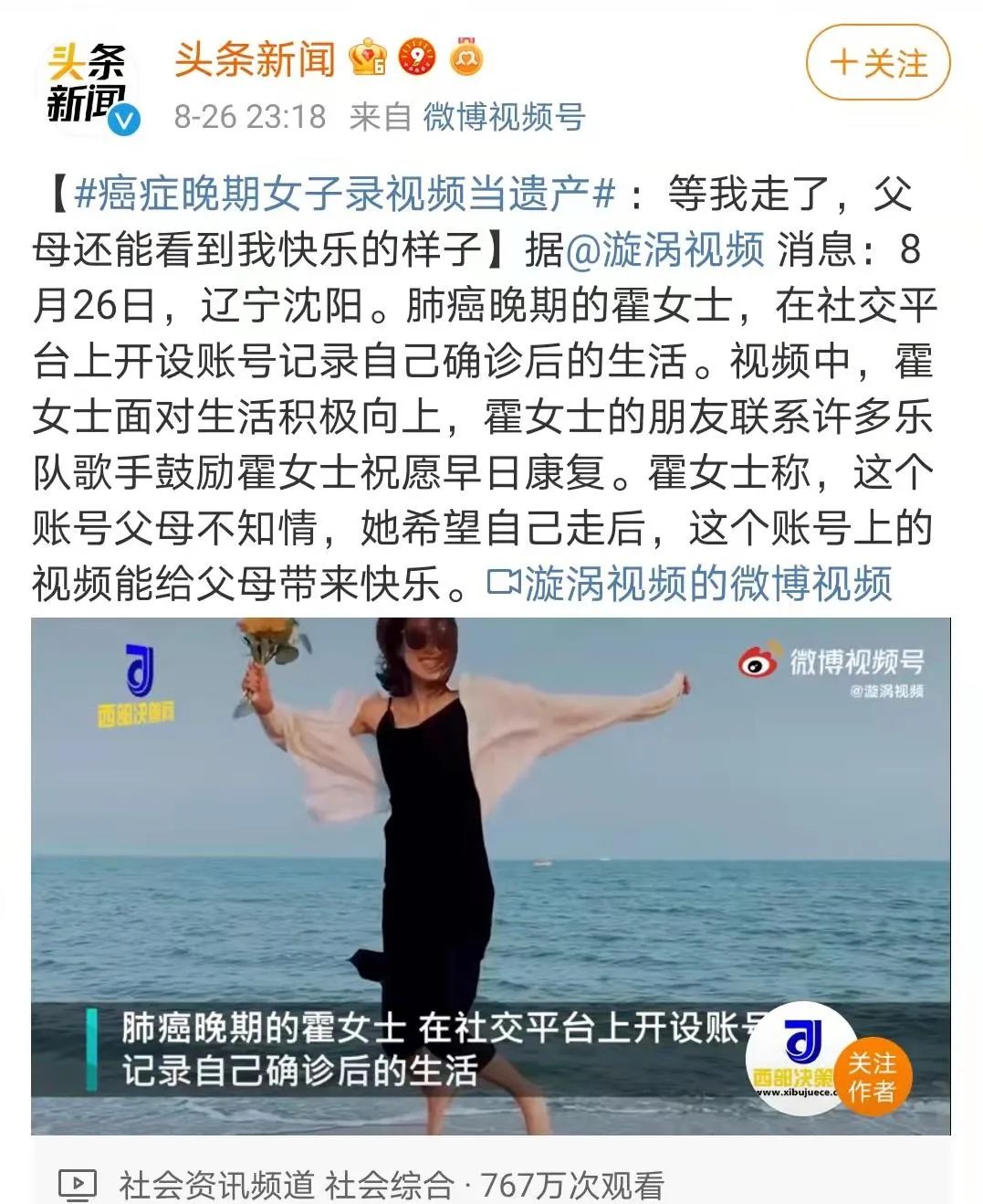 前不久,一则新闻让无数人破防了。29岁的东北姑娘九九(化名)被确诊为肺癌晚期,她在乐观抗癌的同时,还在社交平台开设了账号,拍摄了一些快乐的视频,记录自己确诊后的生活。她希望自己走后,账号上的视频能给父母带来快乐▽