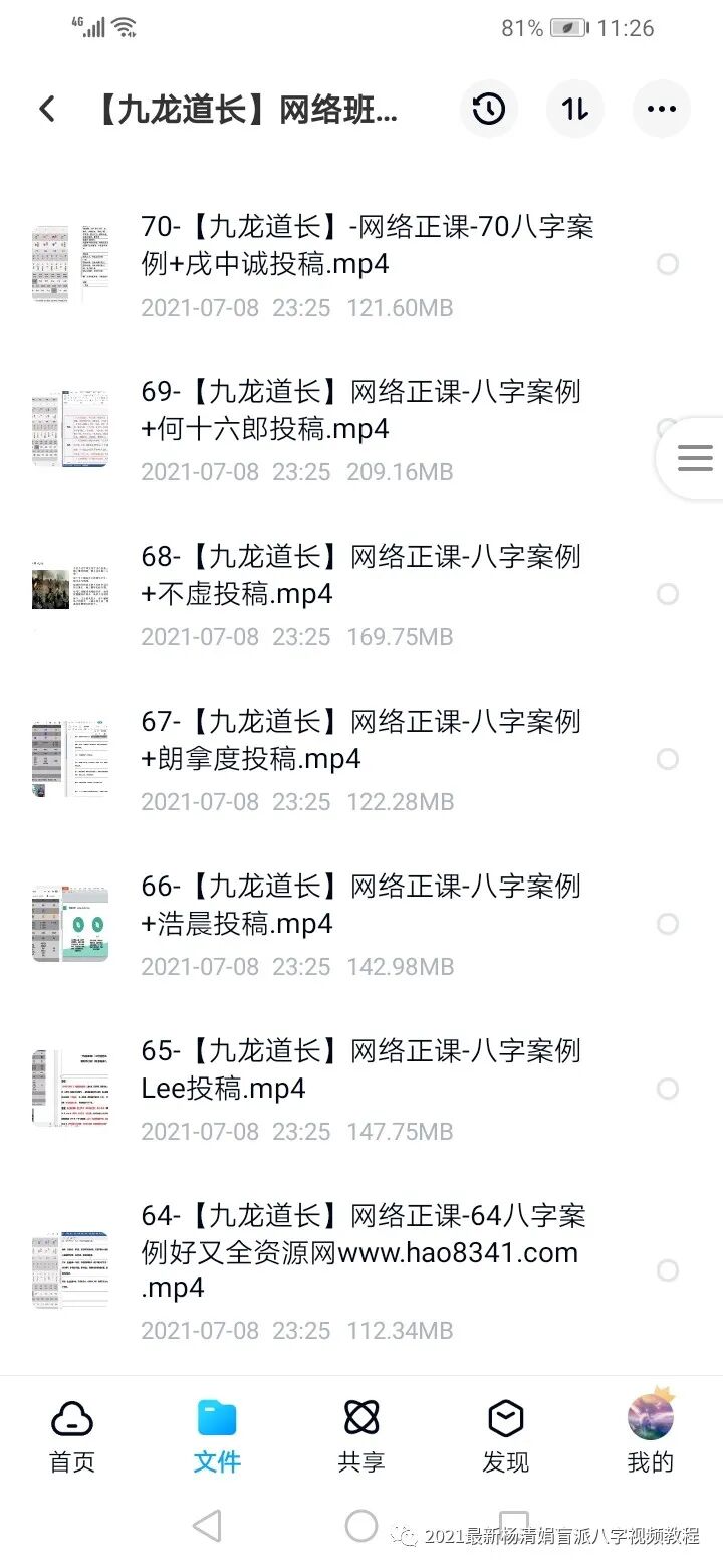 目前,九龙道长的视频教程,包括实站班26集,网络正课185集,网络直播课22集,优秀学员笔记12份。