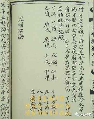 这就是说,天干是甲,己天出生的,那末他出生时间便从甲子(半夜23点—1点)开始推算。如仍以刚才九月初十生人为例,现知道此人是辰时生,而九月初十是丙戌,那末根据歌诀“丙辛从戊起”,也就是从戊子起开始推算,依次是巳丑、庚寅、辛卯、壬辰。这样推算下来,可以得知那人生时的干支,就是壬辰了。